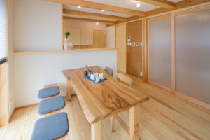 地産地消の考えのもと全国に誇れる資源の紀州材を環境に優しい自然乾燥で大工さんの手刻みにこだわり、家の中の空気がおいしいなと思える家づくりを行っています。