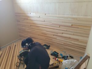 寝室の壁に厚みの違う5種類の胴縁を使い
