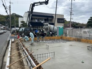 海南家も基礎のベースコンクリートを昨日打設