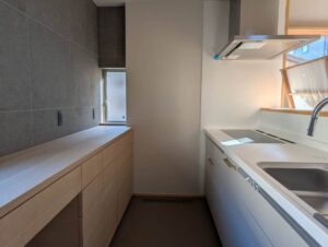 キッチンと別注家具で製作したバック棚も姿を