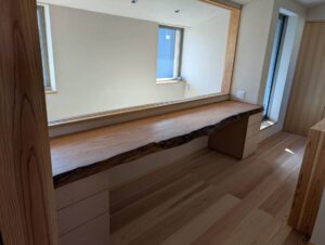 花梨の一枚板のカウンターも姿を現しています。