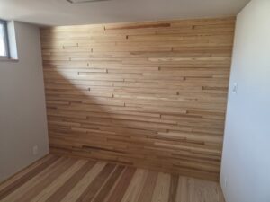 寝室の壁の一部も杉材を使い