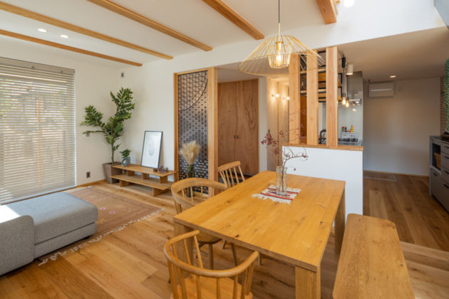 高断熱(UA値0.52W/㎡K)高気密(C値0.5c㎡/㎡)とし、床下エアコンと全熱交換型第一種全館換気により、小さなエネルギーで快適に暮らせる環境も整えています。