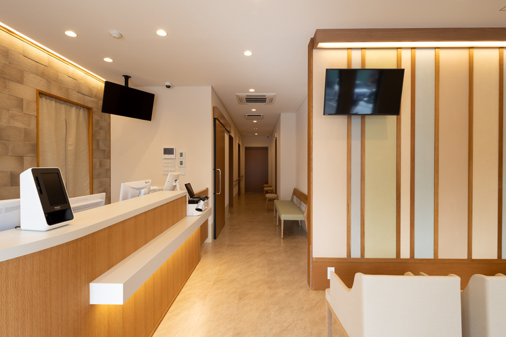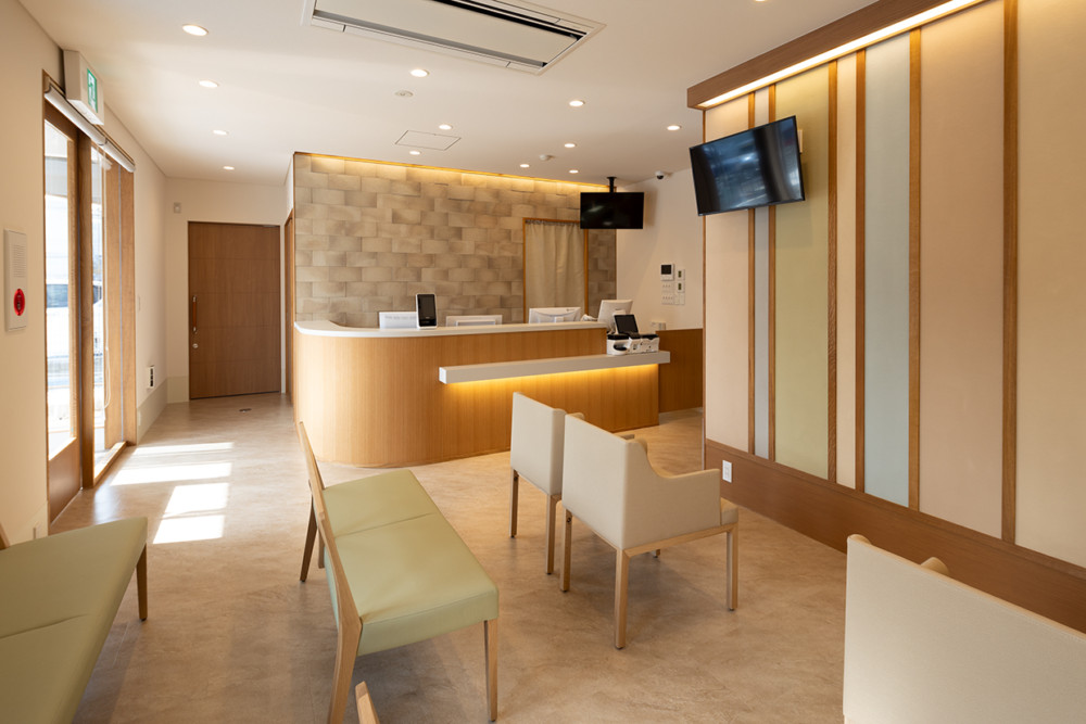 消化器の診察を得意とする内科のクリニックです。敷地は和歌山市の東部の田園地域に位置し地域住民の方の健康管理に重点をおいた施設となっています。外観は田園地域の中で違和感なく存在するとともに医療施設としての存在感を示すようなデザインとしています。内部空間は医療施設にありがちな冷たい印象を避けるために左官仕上げ、土物タイル、木材を使用しあたたかな空間とすることを意図しています。医療機器は最新の機器を設置して地域医療の充実を図るように考えています。