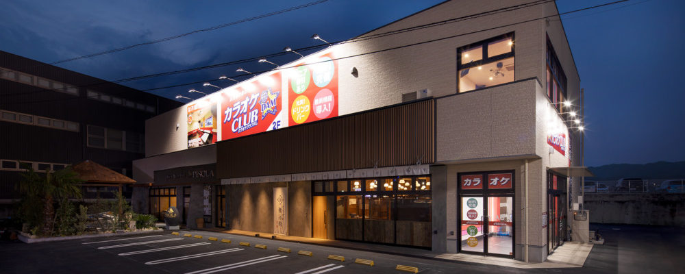 和歌山県岩出市に2019年7月30日にオープンしたカラオケCLUBDAMです。 全室最新機種を導入し設備や演出にこだわった新感覚のカラオケとなりました。 設計監理(株)瀧川建築デザイン事務所